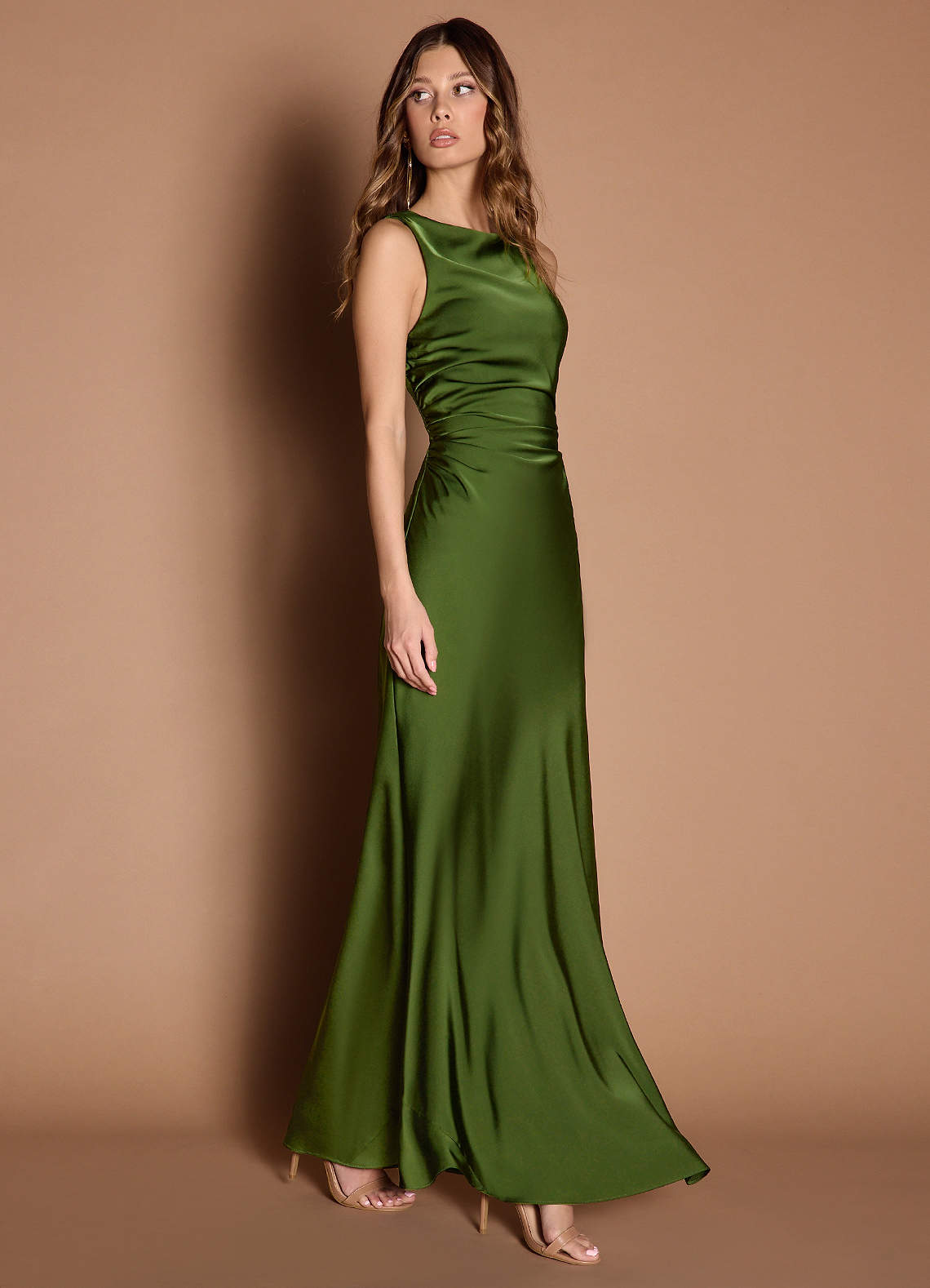 This stunning satin evening gown features a sleek H-line silhouette that cinches the waist, accentuating your figure. The dramatic open-back design adds a bold touch, while the lustrous fabric ensures a luxurious look. Perfect for formal occasions, this dress combines sophistication with modern elegance.