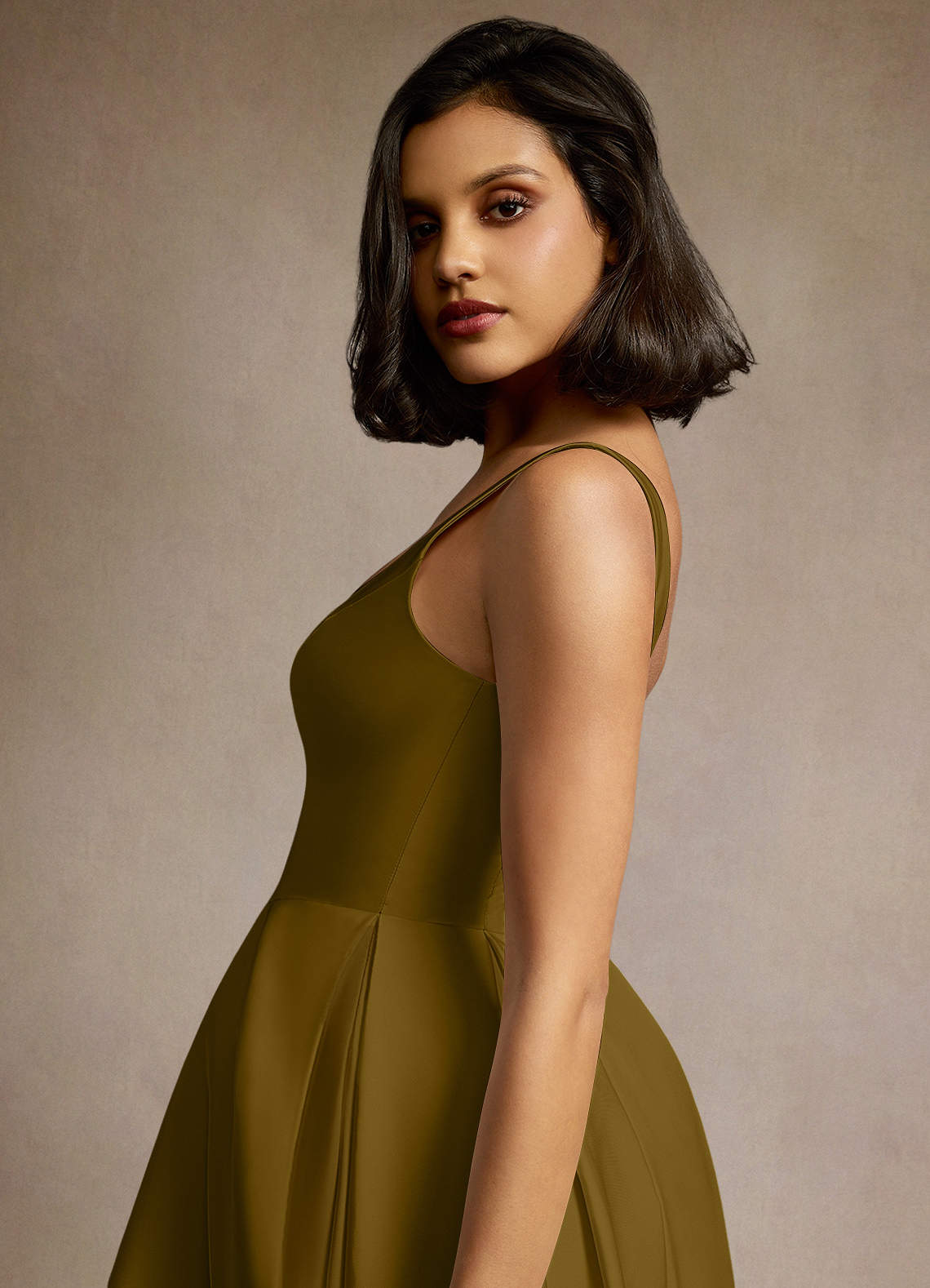 The Olivia Cream Pleated Midi Dress features an elegant scoop neckline paired with a pointed waistline. The pleated A line skirt is midi length, complete with hidden pockets. Wear this dress to your next formal event.